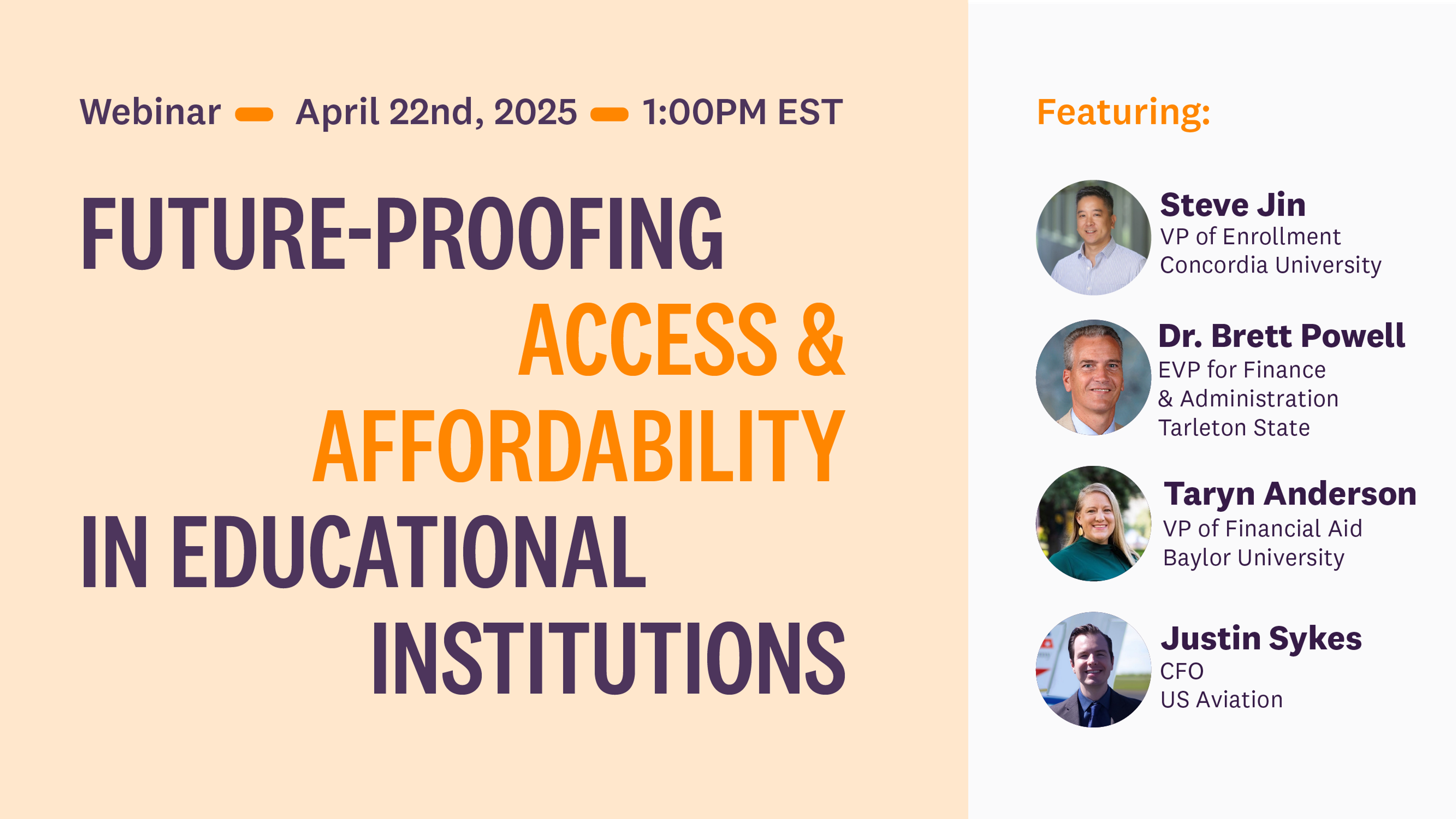 That was the central theme of Clasp’s higher ed finance webinar on April 22, 2025, where panelists from Baylor University, Tarleton State University, Concordia University Irvine, and US Aviation Academy joined our own Head of Growth, Marty Herrick, to unpack the urgent realities—and promising solutions—shaping access and affordability today.